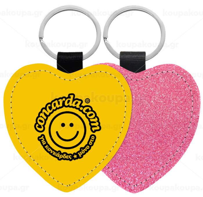 Concarda, Μπρελόκ PU δερμάτινο glitter καρδιά ΡΟΖ