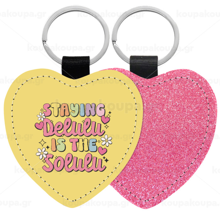 Delulu, Μπρελόκ PU δερμάτινο glitter καρδιά ΡΟΖ