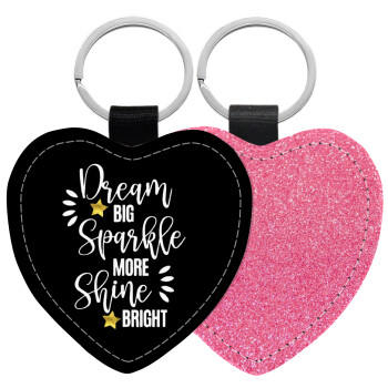 Dream big, Sparkle more, Shine bright, Μπρελόκ PU δερμάτινο glitter καρδιά ΡΟΖ