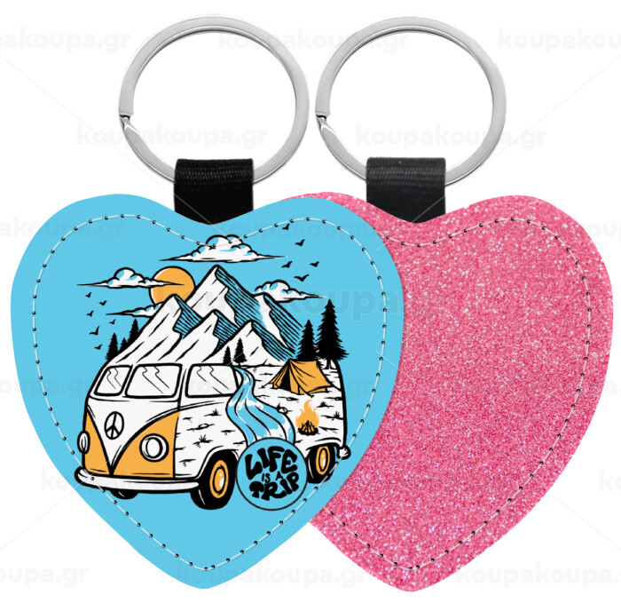 Life is a trip, Μπρελόκ PU δερμάτινο glitter καρδιά ΡΟΖ