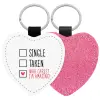 Single, Taken, Who cares i'm amazing, Μπρελόκ PU δερμάτινο glitter καρδιά ΡΟΖ