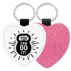 You can do it, Μπρελόκ PU δερμάτινο glitter καρδιά ΡΟΖ