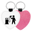 Fuel crisis, Μπρελόκ PU δερμάτινο glitter καρδιά ΡΟΖ