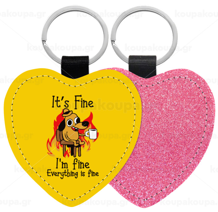 It's Fine I'm Fine Everything Is Fine, Μπρελόκ PU δερμάτινο glitter καρδιά ΡΟΖ