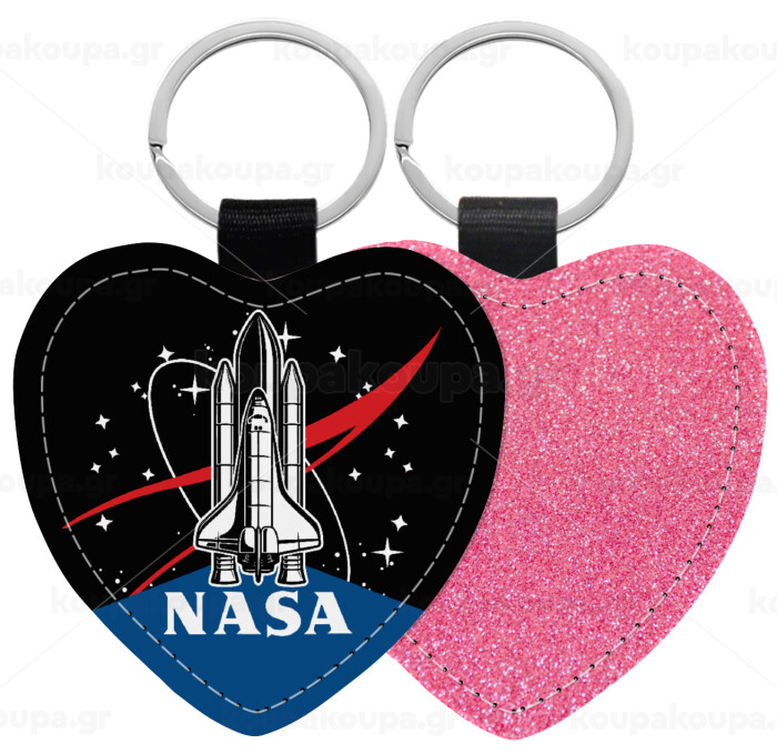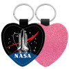 NASA Badge, Μπρελόκ PU δερμάτινο glitter καρδιά ΡΟΖ