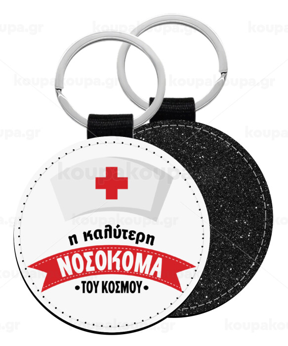 Η καλύτερη νοσοκόμα του κόσμου!!!, Μπρελόκ Δερματίνη, στρογγυλό ΜΑΥΡΟ (5cm)