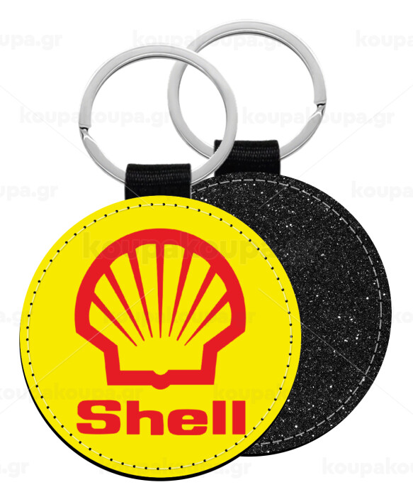 Πρατήριο καυσίμων SHELL, Μπρελόκ Δερματίνη, στρογγυλό ΜΑΥΡΟ (5cm)