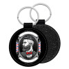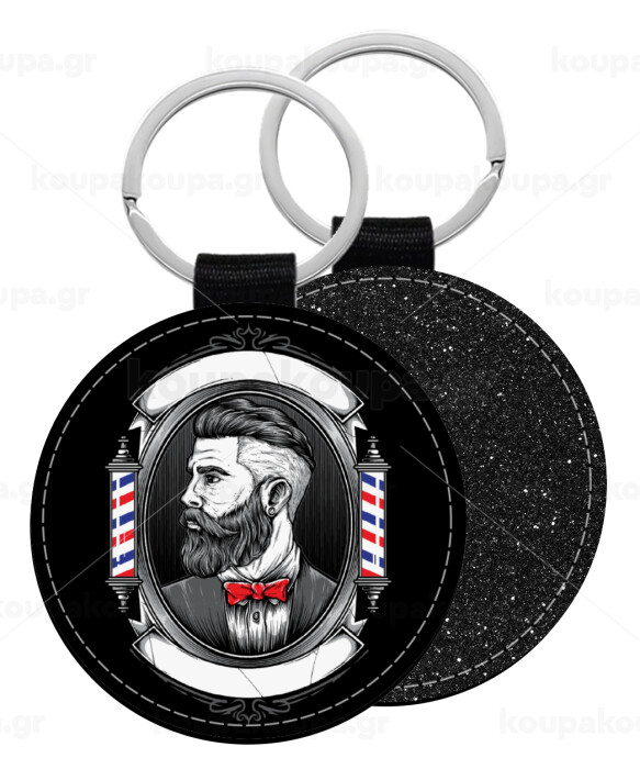 Barber shop, Μπρελόκ Δερματίνη, στρογγυλό ΜΑΥΡΟ (5cm)
