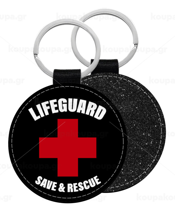 Lifeguard Save & Rescue, Μπρελόκ Δερματίνη, στρογγυλό ΜΑΥΡΟ (5cm)