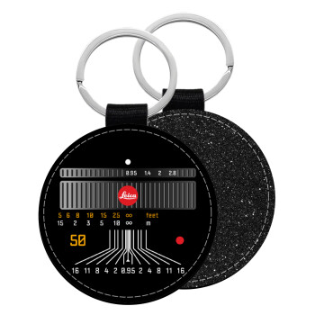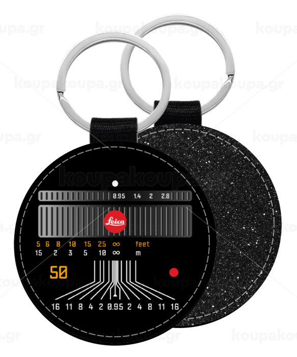 Leica Lens, Μπρελόκ Δερματίνη, στρογγυλό ΜΑΥΡΟ (5cm)