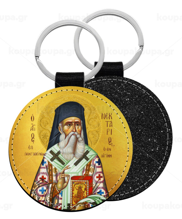 Saint Nektarios, Μπρελόκ Δερματίνη, στρογγυλό ΜΑΥΡΟ (5cm)
