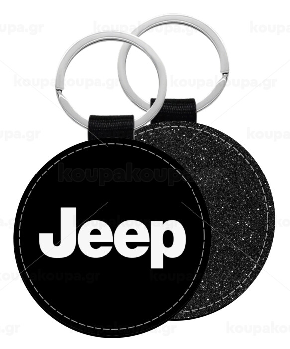 Jeep, Μπρελόκ Δερματίνη, στρογγυλό ΜΑΥΡΟ (5cm)