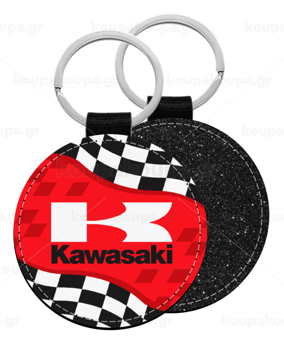 Kawasaki, Μπρελόκ Δερματίνη, στρογγυλό ΜΑΥΡΟ (5cm)