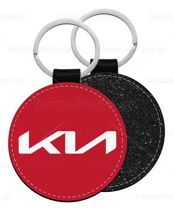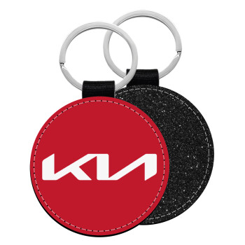 KIA, Μπρελόκ Δερματίνη, στρογγυλό ΜΑΥΡΟ (5cm)