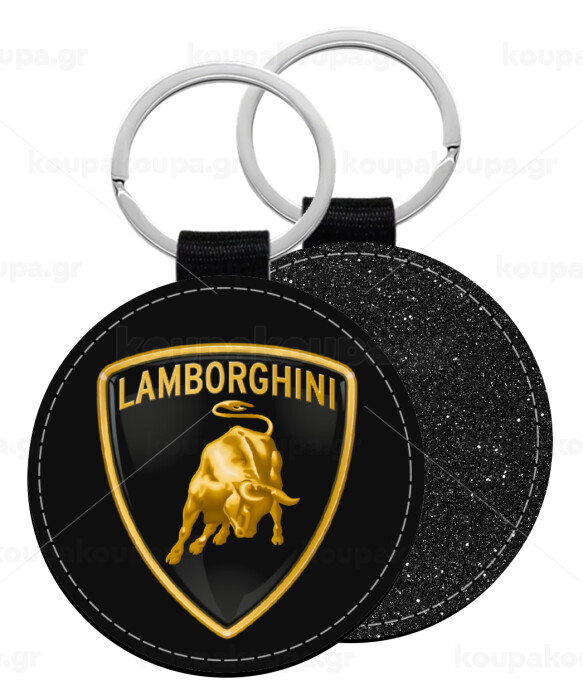 Lamborghini, Μπρελόκ Δερματίνη, στρογγυλό ΜΑΥΡΟ (5cm)