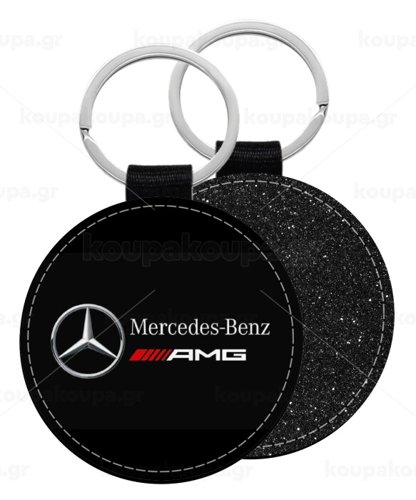 Mercedes AMG, Μπρελόκ Δερματίνη, στρογγυλό ΜΑΥΡΟ (5cm)