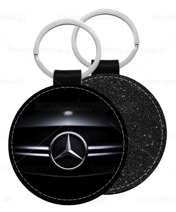 Mercedes car, Μπρελόκ Δερματίνη, στρογγυλό ΜΑΥΡΟ (5cm)