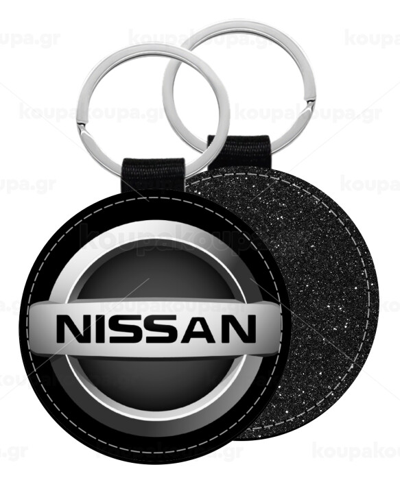nissan, Μπρελόκ Δερματίνη, στρογγυλό ΜΑΥΡΟ (5cm)