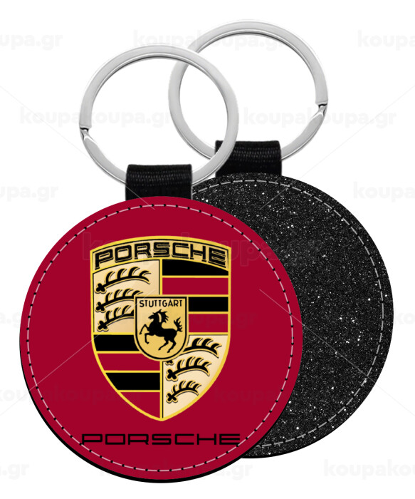 Porsche, Μπρελόκ Δερματίνη, στρογγυλό ΜΑΥΡΟ (5cm)