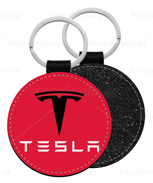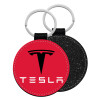 Tesla motors, Μπρελόκ Δερματίνη, στρογγυλό ΜΑΥΡΟ (5cm)