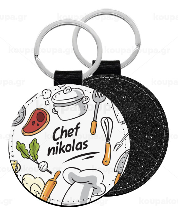 Chef με όνομα, Μπρελόκ Δερματίνη, στρογγυλό ΜΑΥΡΟ (5cm)