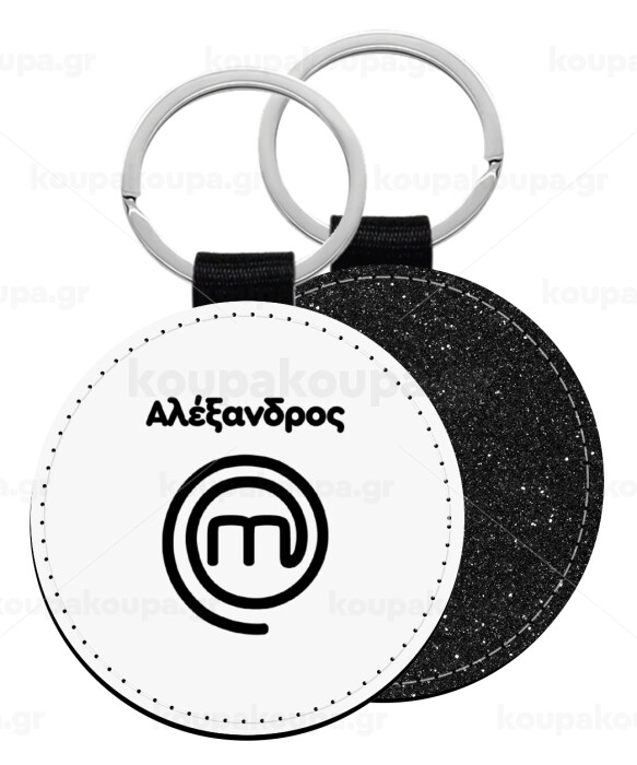 Master Chef Greece, Μπρελόκ Δερματίνη, στρογγυλό ΜΑΥΡΟ (5cm)
