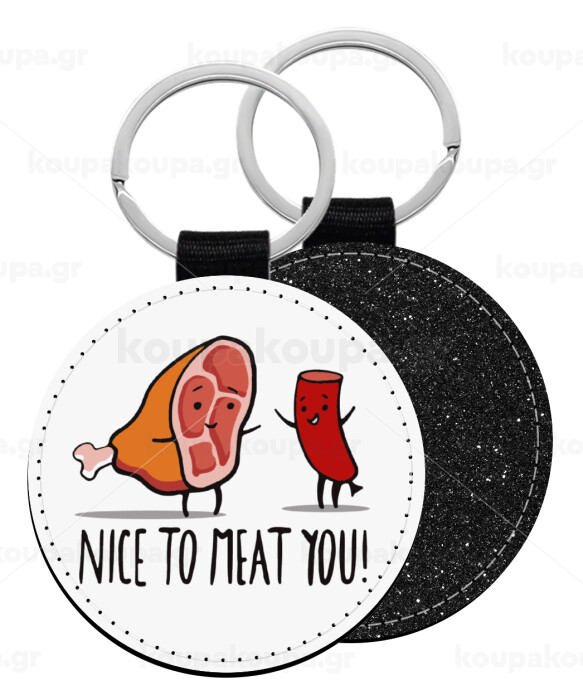 Nice to MEAT you, Μπρελόκ Δερματίνη, στρογγυλό ΜΑΥΡΟ (5cm)