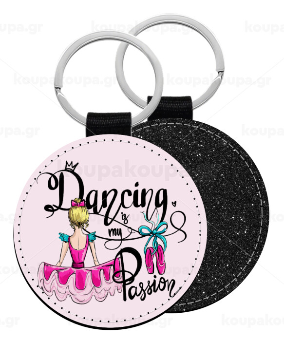 Dancing is my Passion, Μπρελόκ Δερματίνη, στρογγυλό ΜΑΥΡΟ (5cm)