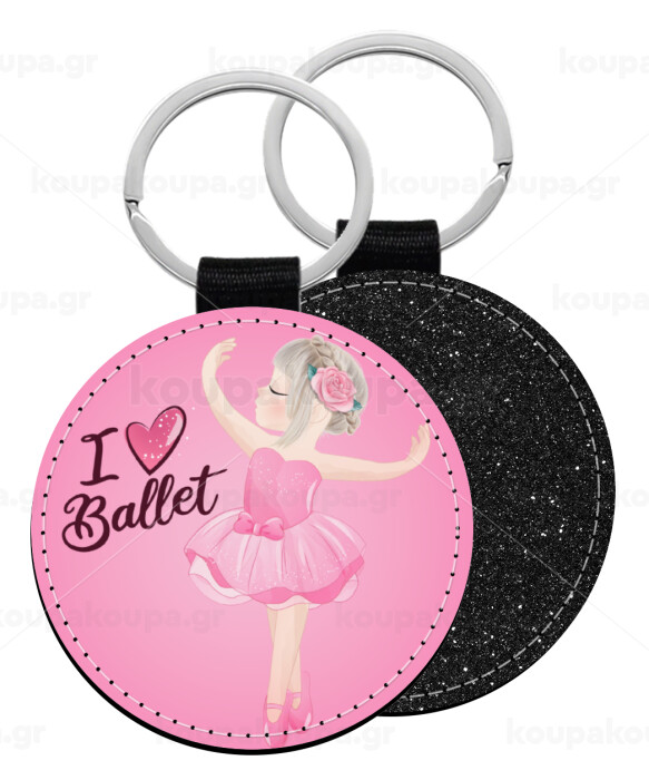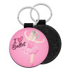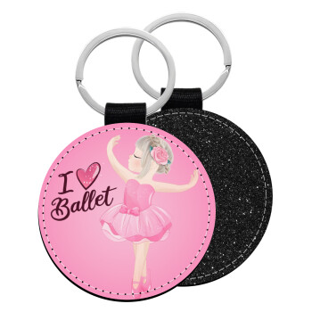 I Love Ballet, Μπρελόκ Δερματίνη, στρογγυλό ΜΑΥΡΟ (5cm)