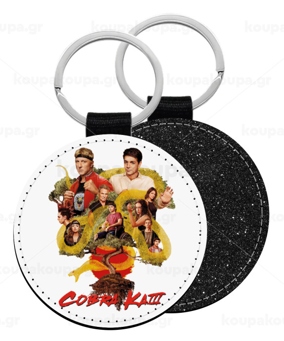 Cobra Kai tree, Μπρελόκ Δερματίνη, στρογγυλό ΜΑΥΡΟ (5cm)