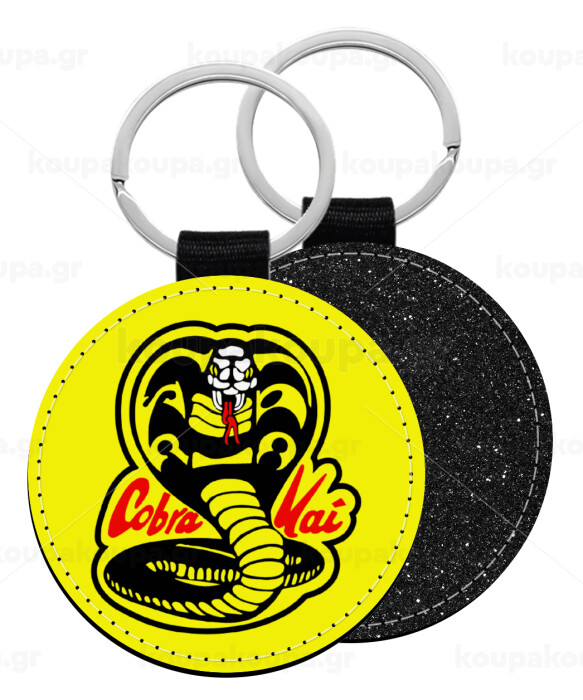 Cobra Kai Yellow, Μπρελόκ Δερματίνη, στρογγυλό ΜΑΥΡΟ (5cm)