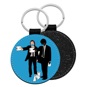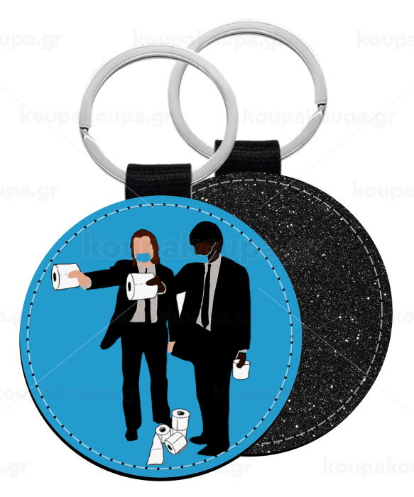 Pulp Fiction 3 meter away, Μπρελόκ Δερματίνη, στρογγυλό ΜΑΥΡΟ (5cm)