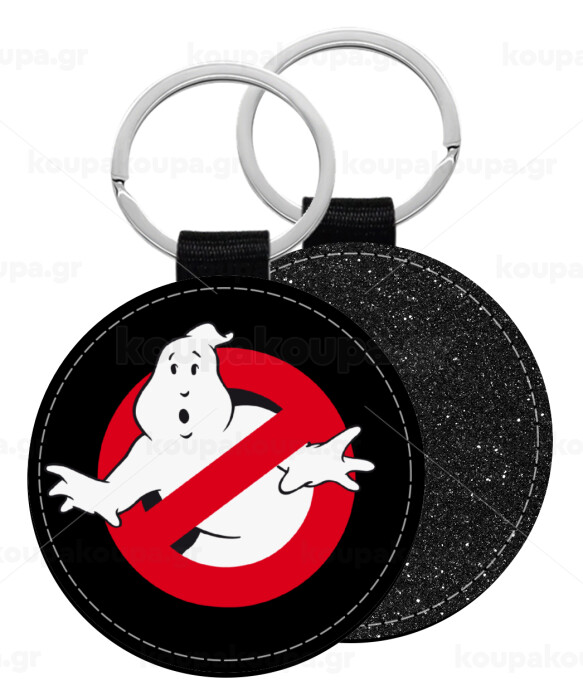 Ghostbusters, Μπρελόκ Δερματίνη, στρογγυλό ΜΑΥΡΟ (5cm)