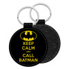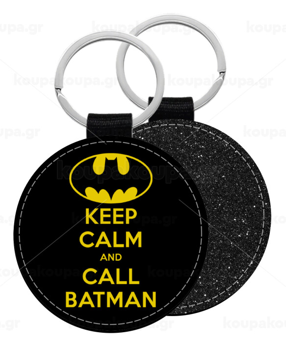 KEEP CALM & Call BATMAN, Μπρελόκ Δερματίνη, στρογγυλό ΜΑΥΡΟ (5cm)