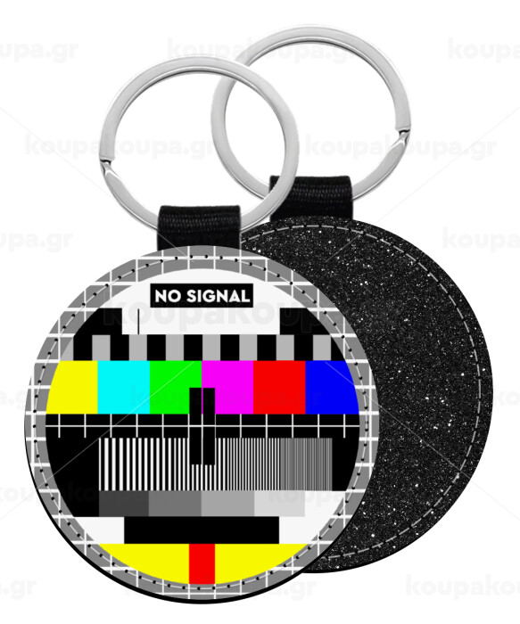 No signal, Μπρελόκ Δερματίνη, στρογγυλό ΜΑΥΡΟ (5cm)