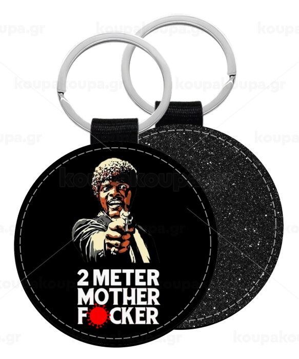 Pulp Fiction 2 meter mother f...r, Μπρελόκ Δερματίνη, στρογγυλό ΜΑΥΡΟ (5cm)