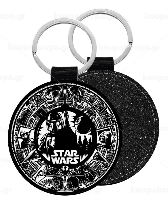Star Wars Disk, Μπρελόκ Δερματίνη, στρογγυλό ΜΑΥΡΟ (5cm)