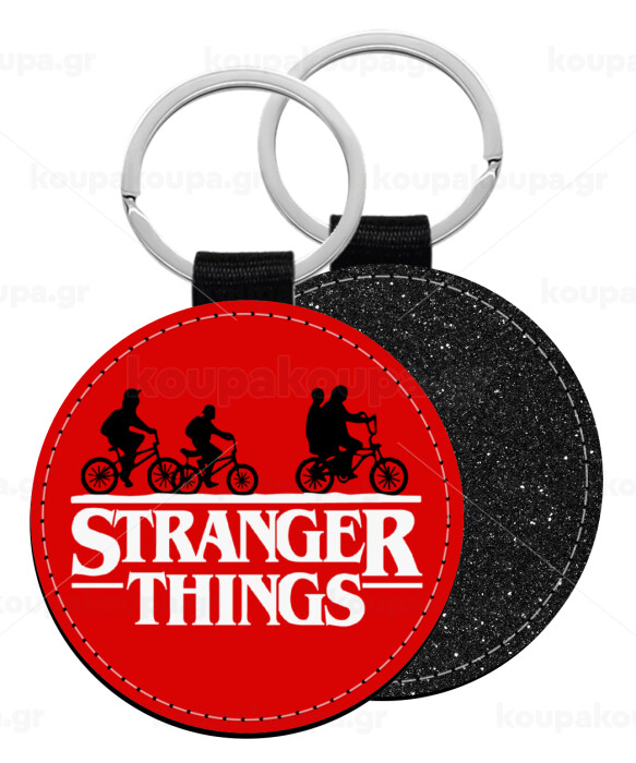 Stranger Things red, Μπρελόκ Δερματίνη, στρογγυλό ΜΑΥΡΟ (5cm)