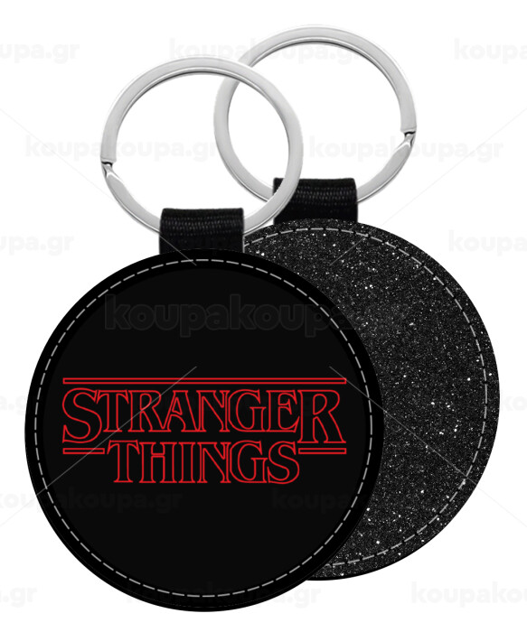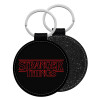 Stranger Things Logo, Μπρελόκ Δερματίνη, στρογγυλό ΜΑΥΡΟ (5cm)