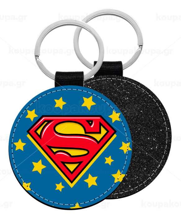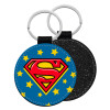 Superman Blue, Μπρελόκ Δερματίνη, στρογγυλό ΜΑΥΡΟ (5cm)