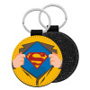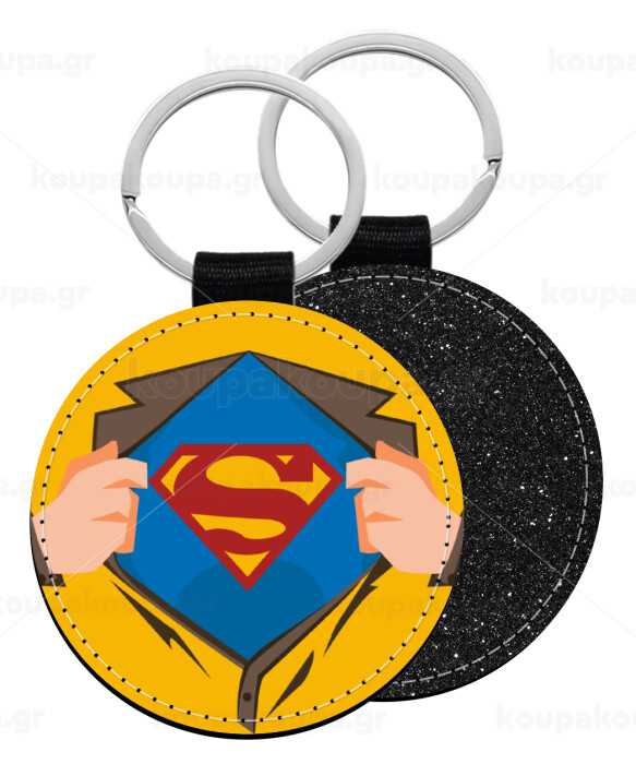 Superman hands, Μπρελόκ Δερματίνη, στρογγυλό ΜΑΥΡΟ (5cm)