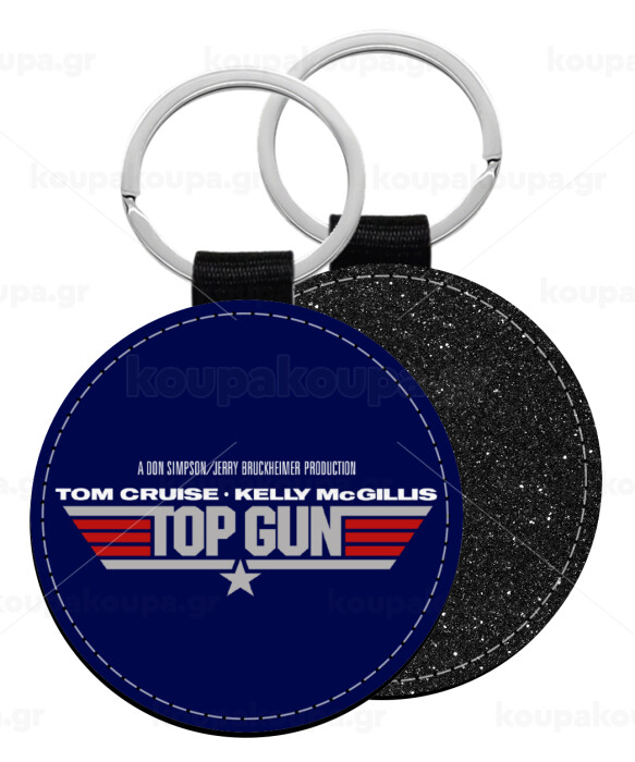 Top Gun, Μπρελόκ Δερματίνη, στρογγυλό ΜΑΥΡΟ (5cm)