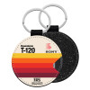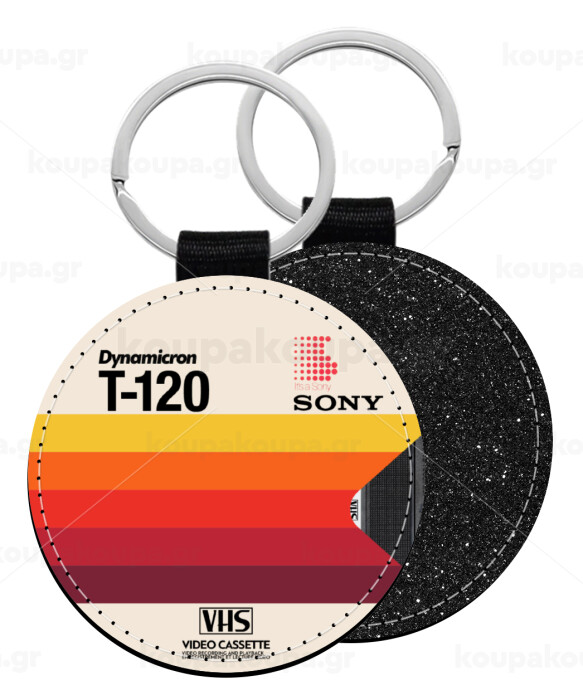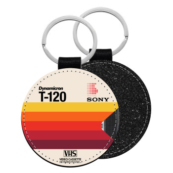 VHS sony dynamicron T-120, Μπρελόκ Δερματίνη, στρογγυλό ΜΑΥΡΟ (5cm)