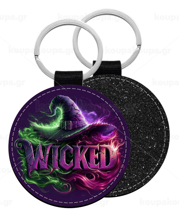 Wicked, Μπρελόκ Δερματίνη, στρογγυλό ΜΑΥΡΟ (5cm)