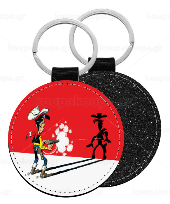 Lucky Luke shadows, Μπρελόκ Δερματίνη, στρογγυλό ΜΑΥΡΟ (5cm)