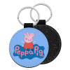 Πέππα το γουρουνάκι μπλε με όνομα, Μπρελόκ Δερματίνη, στρογγυλό ΜΑΥΡΟ (5cm)