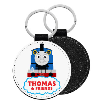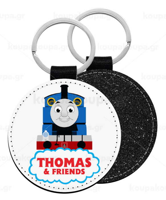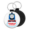 Τόμας το τρενάκι, Μπρελόκ Δερματίνη, στρογγυλό ΜΑΥΡΟ (5cm)