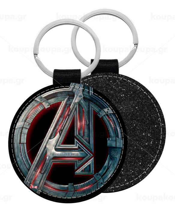 Avengers, Μπρελόκ Δερματίνη, στρογγυλό ΜΑΥΡΟ (5cm)