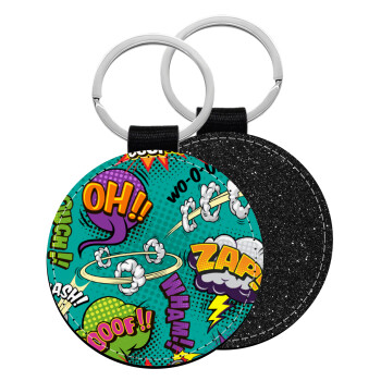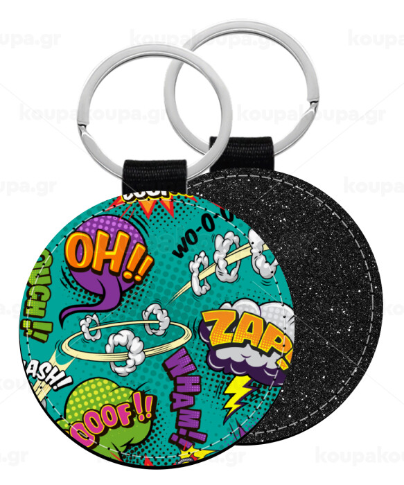 Comic oh, Μπρελόκ Δερματίνη, στρογγυλό ΜΑΥΡΟ (5cm)