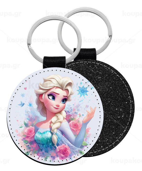 Elsa Princess, Μπρελόκ Δερματίνη, στρογγυλό ΜΑΥΡΟ (5cm)